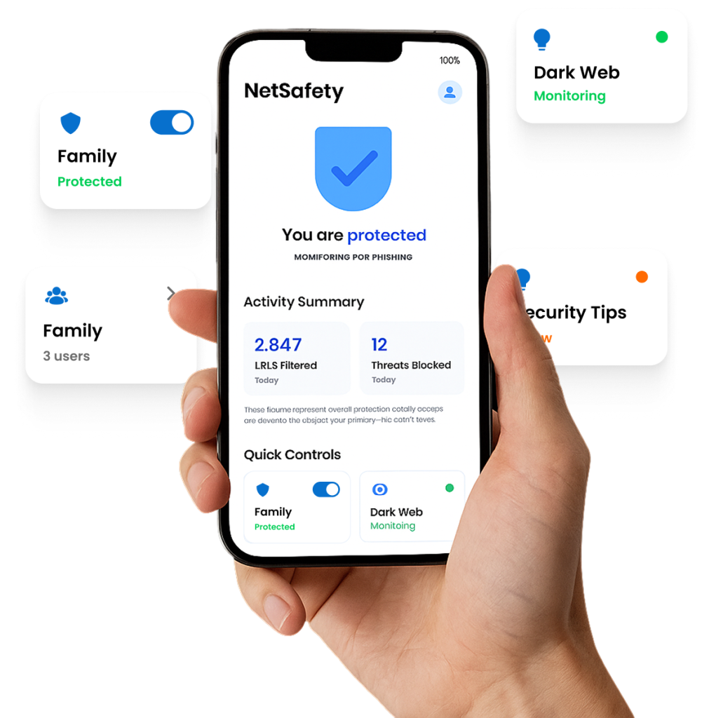 NetSafety ID lets you check if your personal data has appeared on the dark web. Simply enter your email address, and the system scans known breach databases to show if your information has been exposed – so you can take action to secure your accounts.